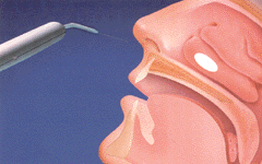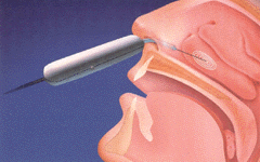 • Si applica sul turbinato ipertrofico un batuffolo imbevuto di anestetico locale ( Lidocaina al 2%) o si spruzza direttamente il medesimo anestetico sulla mucosa.